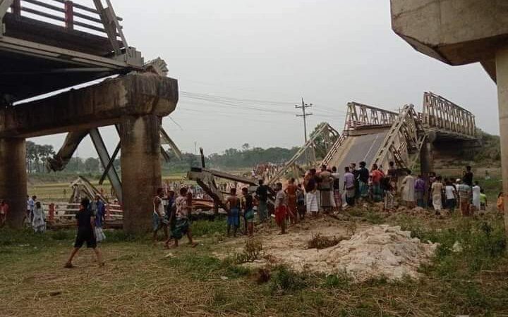 ত্রিশালে ব্রিজ ভেঙ্গে নদীতে গাড়ী