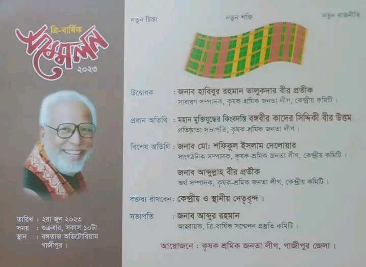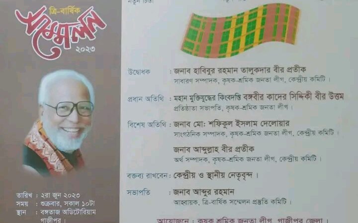 কৃষক শ্রমিক জনতা লীগ গাজীপুর জেলার ত্রি-বার্ষিক সম্মেলন ২রা জুন:সম্মেলন ঘিরে উৎসবের আমেজ