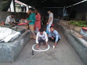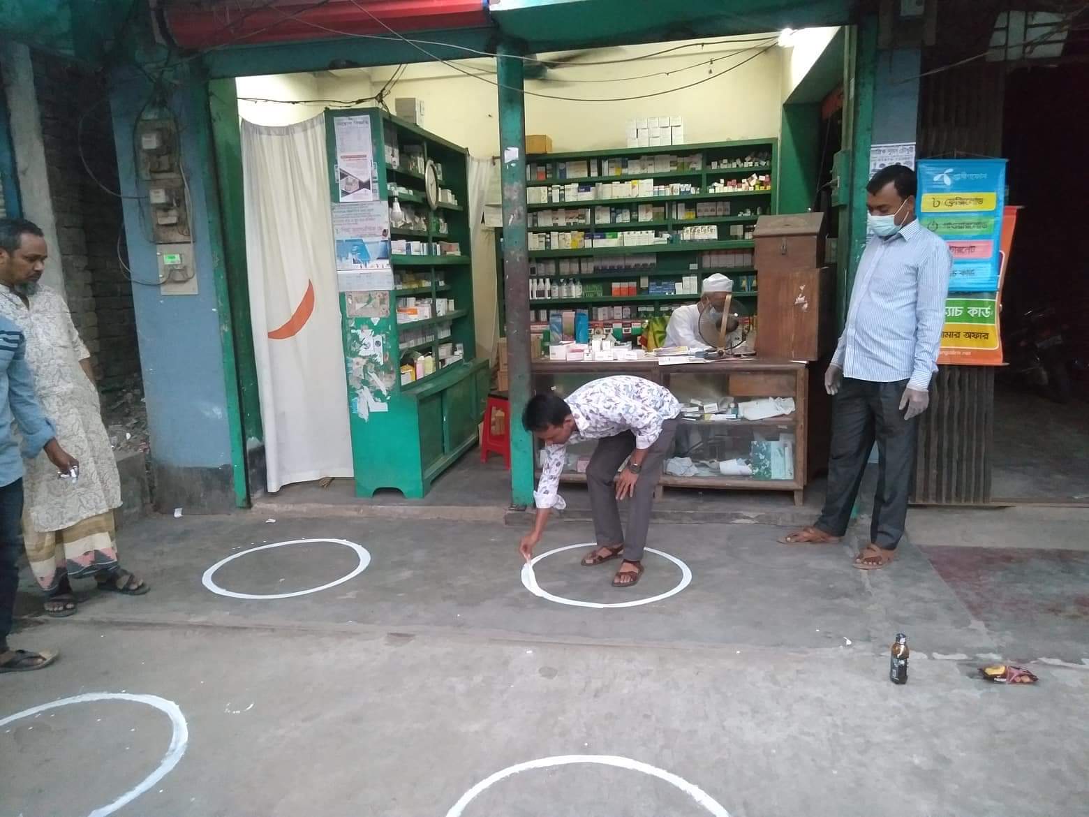 ময়মনসিংহে বৃত্ত এঁকে ক্রেতাদের নিরাপদ দূরত্ব দেখাল ছাত্রলীগ