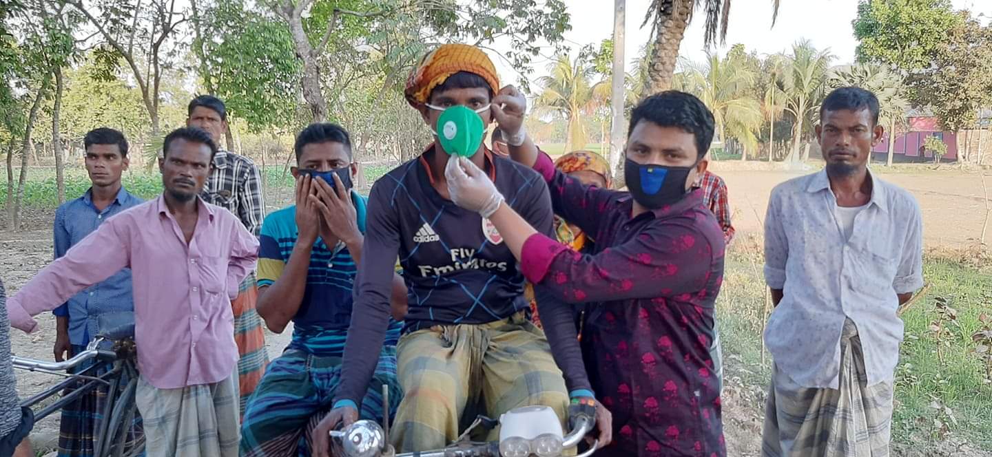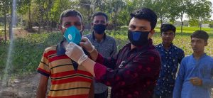 বিনামূল্যে বিতরণ করছেন মাস্ক ও হ্যান্ড স্যানিটাইজার। বাড়ি বাড়ি গিয়ে দিচ্ছেন সচেতনামূলক লিফলেট।
