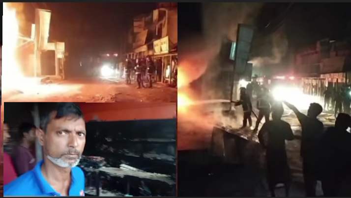 গোলাম রব্বানীর মুদীর দোকানে আগুন লাগে।