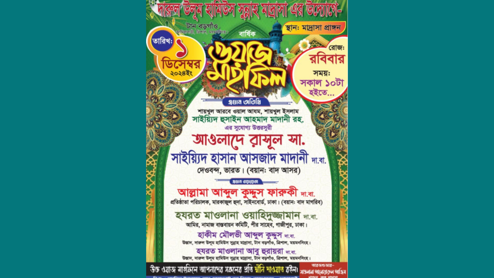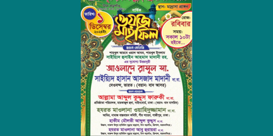 ত্রিশালে দারুল উলূম হামিউস সুন্নাহ মাদ্রাসার বার্ষিক ওয়াজ মাহফিল রবিবার