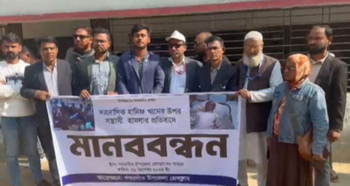 গফরগাঁওয়ে সাংবাদিক হানিফ খানের উপর  সন্ত্রাসীদের হামলার প্রতিবাদে মানববন্ধন
