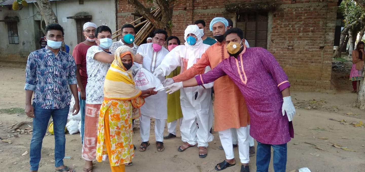 অসহায় দিনমজুরসহ বিভিন্ন দরিদ্র মানুষদের মধ্যে নির্দিষ্ট দূরত্ব বজায় রেখে বিতরণ করা হয় ত্রাণ।