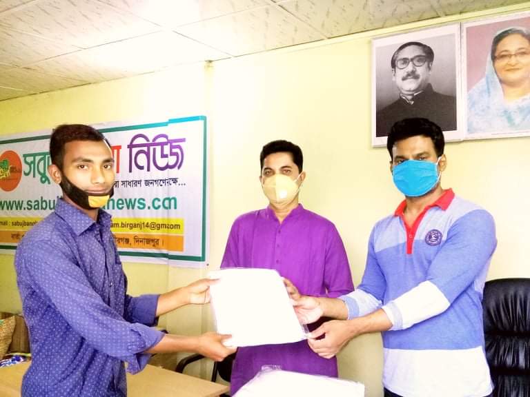দিনাজপুরের বীরগঞ্জে সবুজ বাংলা নিউজ এর স্টাফদের মাঝে পিপিই প্রদান