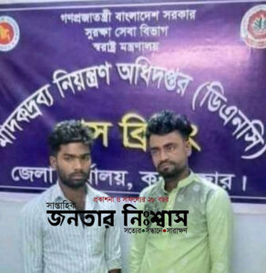 মাদকদ্রব্য নিয়ন্ত্রণ অধিদপ্তর কক্সবাজার কর্তৃক ২৫ নভেম্বর ১৬.০০—১৬.৪০ ঘটিকার সময় সহকারী পরিচালক জনাব মোহাম্মদ রুহুল আমিন এর সার্বিক তত্ত্বাবধানে পরিদর্শক জনাব জীবন বড়ুয়া এর নেতৃত্বে কক্সবাজার সদর থানাধীন ঝাউতলাস্হ জেলা জীপ,মাইক্রো,কার মালিক সমিতির প্রধান কার্যালয় এর মেইন গেইটের সামনে রাস্তার পূর্ব পার্শ্বে রাস্তার ফুটপাত ওপর থেকে ১ নং আসামি মোঃ আলম (২৩), পিতা – মৃত ইসমাইল,মাতা – নুরজাহান বেগম,সাং- ময়নার ঘোনা,০২ নং ওয়ার্ড, পালংখালী ইউপি,থানা-উখিয়া জেলা -কক্সবাজার। ২ নং আসামি মোঃ রফিকুল ইসলাম (২২),পিতা -মোঃ আবদুস সালাম, মাতা-লালমতি,সাং- ধুমচা কাটা,০১ নং ওয়ার্ড, ইদগড় ইউপি,থানা-রামু,জেলা -কক্সবাজার।