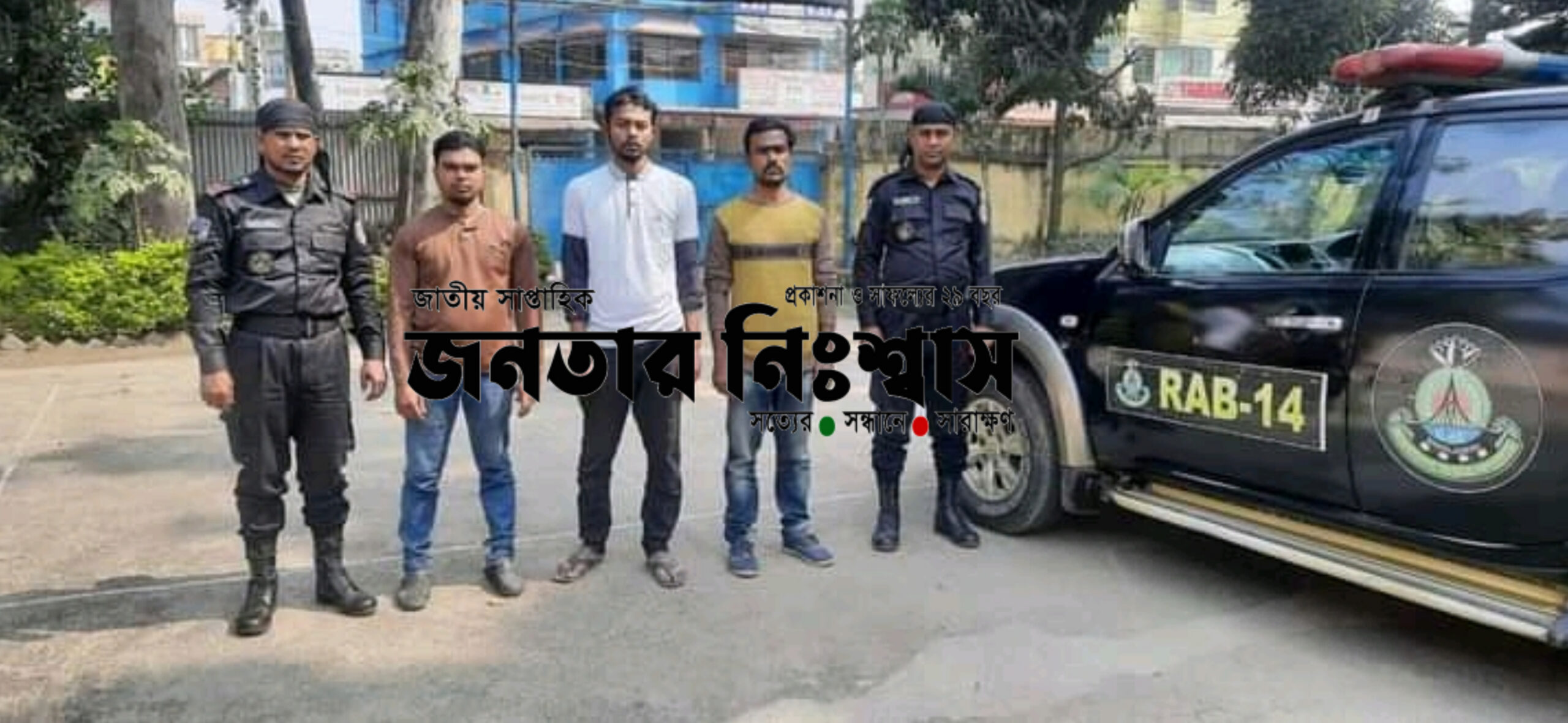 ০৯ ফেব্রুয়ারি ২০২২ইং তারিখে ১০.৪৫ ঘটিকা র্যাব-১৪, সিপিসি-৩, ভৈরব ক্যাম্প, কিশোরগঞ্জ এর একটি আভিযানিক দল গোপন সংবাদের ভিত্তিতে ব্রাহ্মণবাড়িয়া জেলার আশুগঞ্জ থানাধীন টোলপ্লাজা পূর্ব দিকে ঢাকা-সিলেট মহাসড়কের ঢাকাগামী লেনের উপর অভিযান পরিচালনা করে মাদক ব্যবসায়ী শ্রী অনুপ কুমার মোহন্ত(২৬), পিতা-শ্রী গোপেশ চন্দ্র মোহন্ত, মোঃ জুয়েল দেওয়ান(৩৭), পিতা-মোঃ নজরুল দেওয়ান, উভয় সাং-রাইগাঁ, থানা-মহাদেবপুর, জেলা-নওগাঁ, মোঃ হৃদয়(২৮), পিতা-আব্দুল মতিন, সাং-বলাইয়া, থানা-রুপগঞ্জ, জেলা-নারায়নগঞ্জগণকে আটক করেন। এসময় ধৃত আসামীগণের দখল হতে ২৮ কেজি মাদকদ্রব্য গাঁজা ও ০১ প্রাইভেটকার ও ০১টি মোটরসাইকেল এবং মাদক বিক্রয়ের নগদ ৭০০০ টাকা’সহ উদ্ধার করে জব্দ করা হয়। ধৃত আসামীগণ দীর্ঘদিন যাবৎ হবিগঞ্জ জেলার সীমান্তবর্তী এলাকা হতে চোরা চালানের মাধ্যমে গাঁজা দেশের অভ্যন্তরে বিভিন্ন স্থানে বিভিন্ন ব্যক্তির কাছে বিক্রয় করে মর্মে স্বীকার করে।