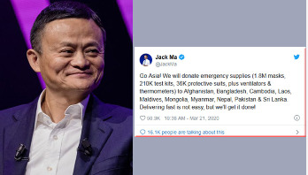 করোনা মোকাবিলায় বাংলাদেশসহ এশিয়ায় সরঞ্জাম দেওয়ার ঘোষণা দিয়েছেন আলিবাবার প্রতিষ্ঠাতা জ্যাক মা।