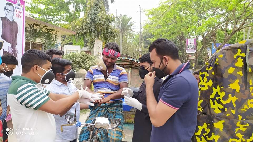 লিফলেট বিতরণের সময় কলেজ ছাত্রলীগের আহ্বায়ক মাহমুদুল হাসান সবুজ বলেন, করোনাভাইরাসের কারণে বাংলাদেশের মানুষও হুমকির মুখে।