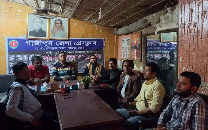 শহীদ বুদ্ধিজীবী দিবস উপলক্ষে গাজীপুর জেলা প্রেসক্লাবের আয়োজনে আলোচনা, দোয়া ও স্মরণ সভা অনুষ্ঠিত হয়েছে।