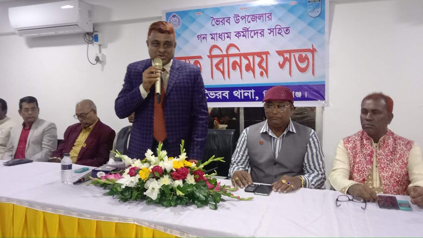 সাংবাদিক বিল্লাল মোল্লার কোরআন তেলায়াতের পর মতবিনিময় সভায় সাংবাদিকদের মধ্যে বক্তব্য রাখেন, ভৈরব প্রেসক্লাব সভাপতি অধ্যাপক শামসুজ্জামান বাচ্চু, টিভি জার্নালিষ্ট এসোসিয়েশনের সভাপতি আসাদুজ্জামান ফারুক, ভৈরব রিপোটার্স ক্লাব ও ইউনিটির সভাপতি ও সাপ্তাহিক অবলম্বন পত্রিকার সম্পাদক তাজুল ইসলাম তাজ ভৈরবী,টিভি জার্নালিষ্ট এসোসিয়েশনের সাধারন সম্পাদক মোস্তাফিজ আমিন,রিপোটার্স ক্লাব ও ইউনিটির সাধারন সম্পাদক মোঃ আলাল উদ্দিন,একুশে টিভির ভৈরব প্রতিনিধি ইসফাহাক আহমেদ বাবু,বৈশাখী টিভির ভৈরব প্রতিনিধি আদিল উদ্দিন আহমেদ,বাংলা ভিশনের প্রতিনিধি সত্যজিৎ দাস দ্রুব,বাংলা টিভির প্রতিনিধি এম.আর সোহেল, মানব কণ্ঠের ভৈরব প্রতিনিধি আক্তারুজ্জামান, বাংলাদেশ মফস্বল সাংবাদিক ফোরাম ভৈরব শাখার সভাপতি ও দৈনিক লাল সবুজের দেশ ভ্রাম্যমাণ প্রতিনিধি মোহাম্মদ ছাবির উদ্দিন রাজু, গাজী টিভি ও দৈনিক ভোরের ডাক এর ভৈরব উপজেলা প্রতিনিধি এমএ হালিম,