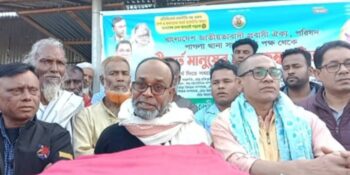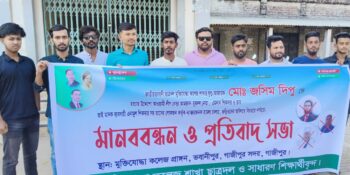 ত্রিশালে সন্ত্রাসী হামলার প্রতিবাদে ও দায়ীদের বিচারের দাবিতে এলাকাবাসীর মানববন্ধন